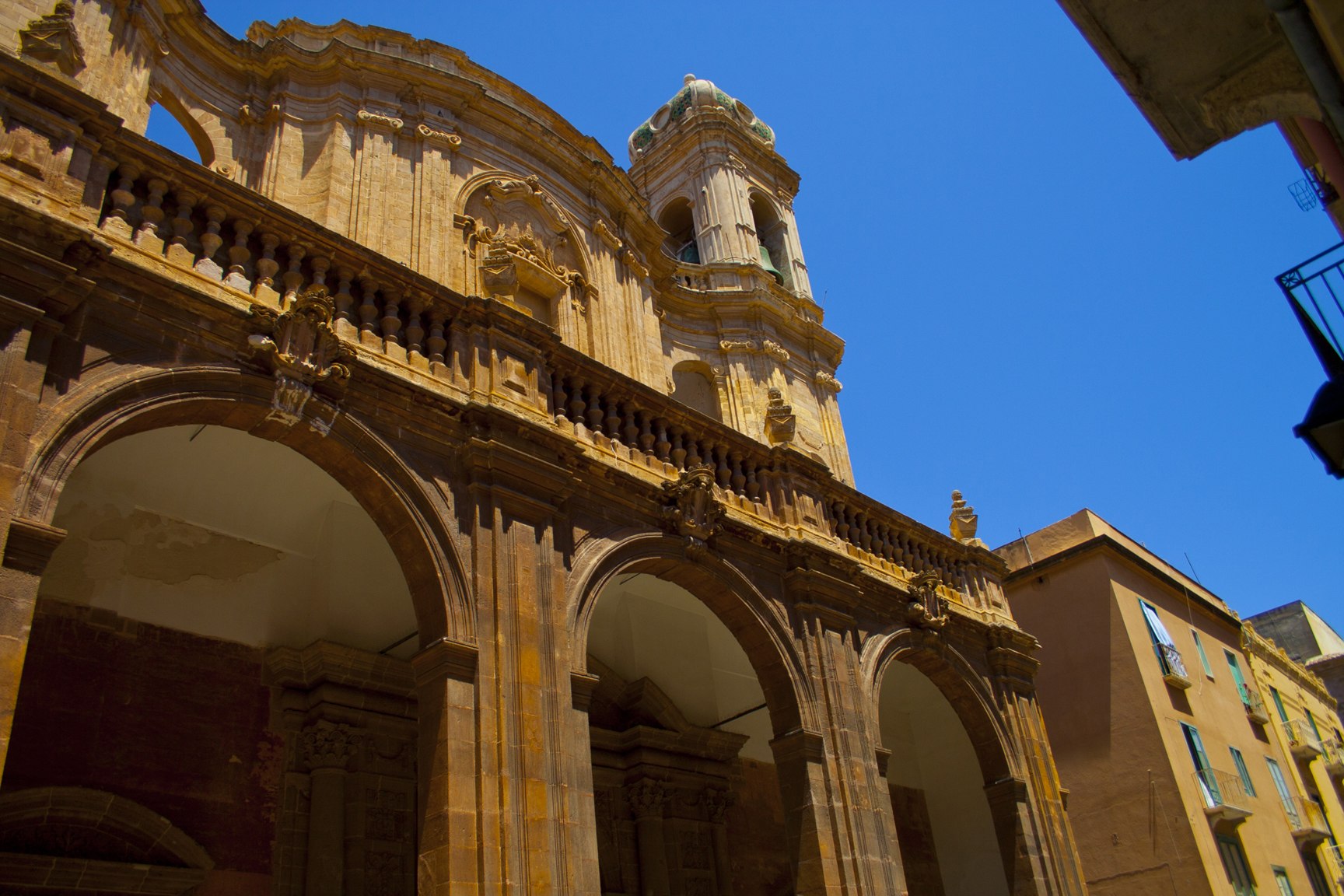 The main street in the old town is Via Vittorio Emanuele, a long pedestrian street that leads to the most beautiful monument in the historic center: Palazzo Senatorio, now the seat of the Town Hall. This palace, a Baroque marvel, has three orders, embellished with the statues of the Madonna of Trapani, San Giovanni Battista, and Sant’Alberto da Trapani. Above the statues are the two characteristic chests with the clock and date display with the city’s coat of arms in the center.